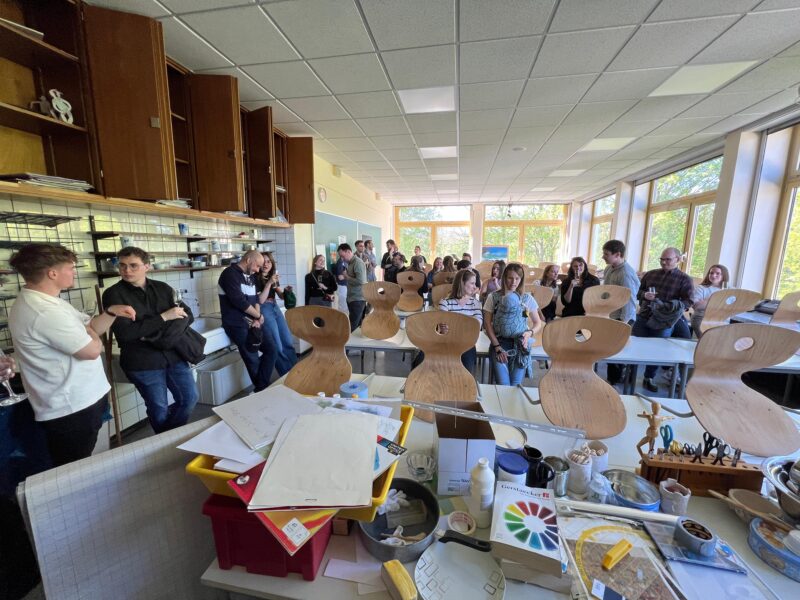 Der Rundgang endete mit einem nachgestellten Foto der damaligen Zeugnisvergabe bei bestem Wetter auf den Stufen des Hinterhofs vom Musikgebäude. Wir würden sagen: Die jungen Damen und Herren haben sich kaum verändert!