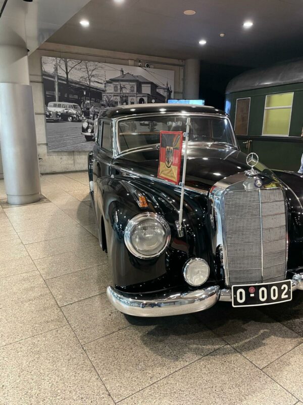 Den Abschluss der Führung machten wir im Keller vom Haus der Geschichte: vor dem Dienstwagen von Konrad Adenauer. Hier erzählte uns Dieter, warum es Adenauer zu verdanken sei, dass die Ziffernfolge 02 auf dem Kennzeichen der Fahrzeuge des Bundeskanzlers auftrete.