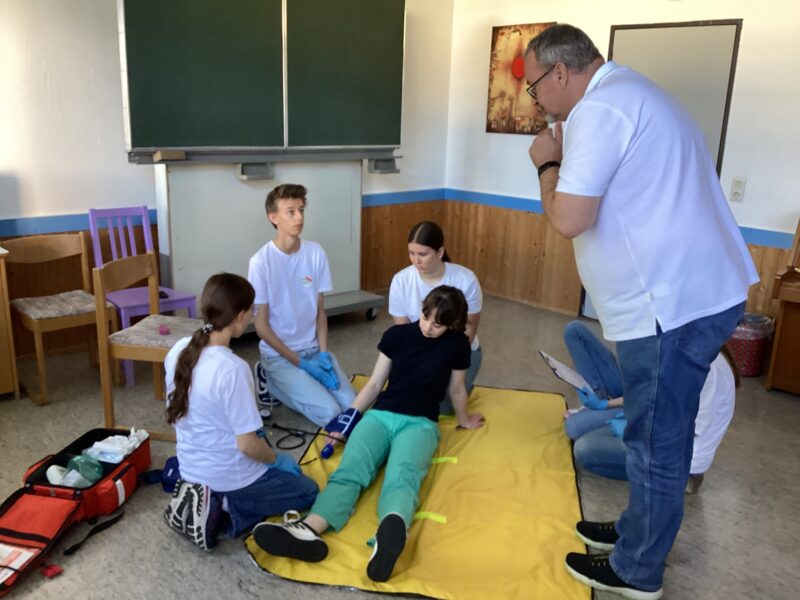 Am gestrigen Tag legten die Schülerinnen und Schüler ihre Prüfungen ab, und die DRK-Prüfer waren beeindruckt von den Leistungen, die sie als die besten Prüfungen bezeichneten, die sie in ihrer bisherigen Laufbahn abgenommen haben. Diese unglaubliche Leistung ist umso bemerkenswerter, da die Schülerinnen und Schüler diese Herausforderungen neben dem Unterrichtsstress am Ende des Schuljahres sowie der vielfältigen und aufwendigen Probenarbeit für musikalische Wettbewerbe und Konzerte bewältigt haben.