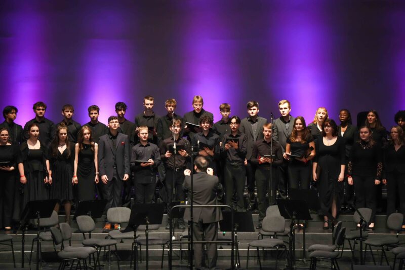 Besonders energiegeladen ging es mit dem Chor der 5. Klassen weiter, der in diesem Jahr das traditionelle „Kyrie Eleison“ in einer modernen Vertonung präsentierte und traditionell bei ihrem ersten Stück von der Jahrgangsstufe 13 unterstützt wurde. Das Abschlussstück vor der Pause, „Obwisana und Sansa Kroma“, sorgte für eine mitreißende Darbietung, die rhythmische Vitalität und kulturelle Vielfalt zeigte und nach Aufforderung des musikalischen Leiters Frank Hilgert das Publikum zum Mitsingen und -klatschen animierte.