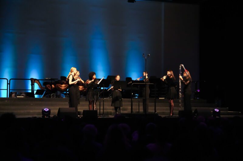 Das Querflötenensemble „flautastique“ unter der Leitung von Karoline Schaeferdiek und das Flötenensemble der MSS 13 präsentierten eine ungeahnte Vielfältigkeit des Flötenklangs und zeigten mit ihren Darbietungen sowohl technische Fertigkeiten als auch eine emotionale Tiefe, die das Publikum begeisterte. Ebenso wie das SBO ist flautastique Preisträger beim Deutschen Orchesterwettbewerb sowie beim internationalen Musikfestival in Neerpelt. Sie spielten sowohl Colemans Arrangement des klassischen Weihnachtsliedes „Jingle Bells“ als auch „Pedazitos“, eine Sammlung von Werken, die die kulturelle Vielfalt und rhythmischen Traditionen Lateinamerikas widerspiegeln.