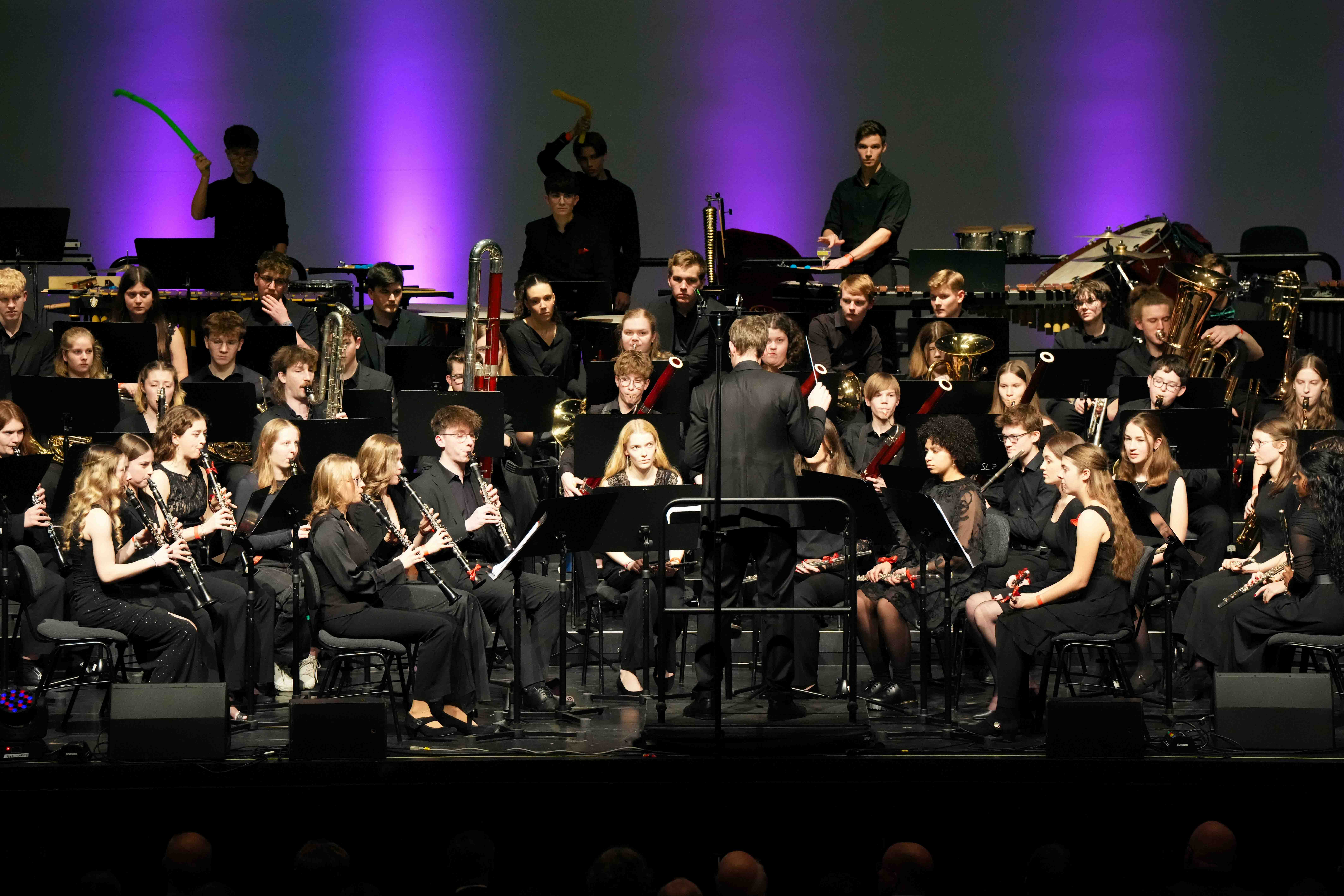 Das Konzert wurde durch das Sinfonische Blasorchester unter der Leitung von Philipp Hebgen eröffnet, das den 1. Preis beim Deutschen Orchesterwettbewerb in der Kategorie „Jugendblasorchester“ sowie beim internationalen Musikfestival in Neerpelt errang. Mit dem Werk „Angels in the Architecture“ von Frank Ticheli präsentierten die Musiker eine Mischung aus verschiedenen musikalischen Stilen. Hebgen erklärte, dass das Werk die Bedeutung von Licht und Schatten thematisiere und die Zuhörer dazu einlade, selbst zu bestimmen, was die Gewinner dieser beiden Seiten seien. Das Orchester beeindruckte mit Solisten, spannenden Percussioninstrumenten und berührender gesanglicher Untermalung.