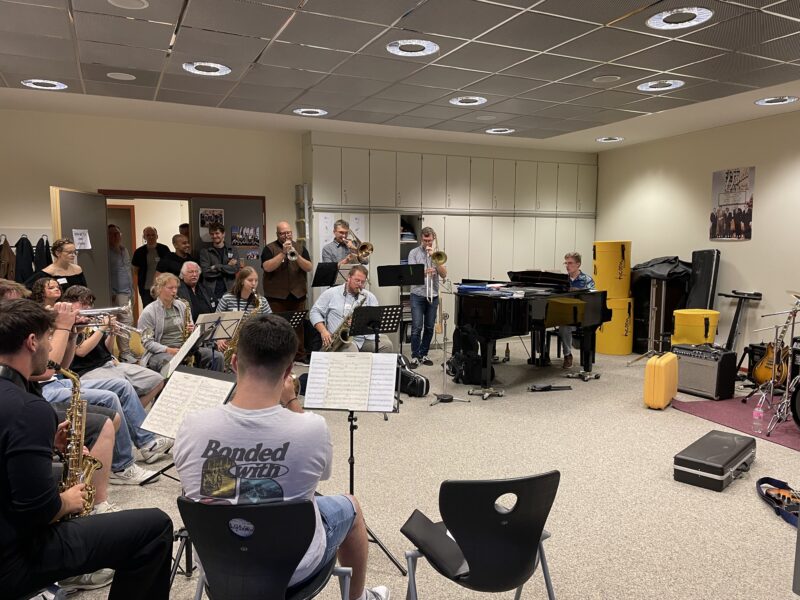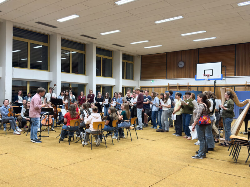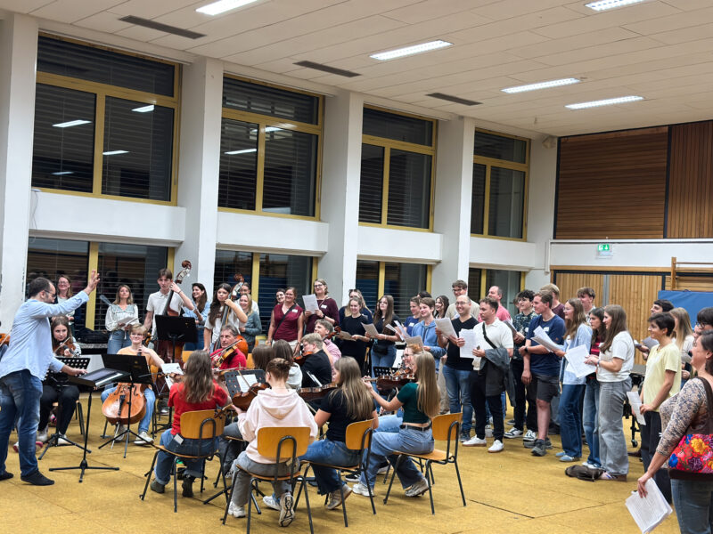 Besonders viel Freude und nostalgische Erinnerungen weckte das gemeinsame Musizieren – viele fühlten sich in die eigene Schulzeit und die damit verbundenen unzählbaren Ensembleproben, Auftritte und Konzertreisen zurückversetzt. Unter der Leitung von Winfried Vögele probten die TeilnehmerInnen des Sinfonieorchesters zu 007-Filmmusik, während Mathias Charton mit dem Oberstufenchor „Art of the Voice“ Vivaldis „Gloria“ einstudierte. Tobias Simon leitete die Kammerphilharmonie bei Dvořáks „Slawischer Tanz Nr. 8“. Zudem gab es eine Gemeinschaftsprobe und Aufführung von „Art of the Voice“ und den Streicherinnen und Streichern in der Turnhalle. Die Jazzer trafen sich sowohl in großer Besetzung als auch in kleinen Combos im Musikgebäude zum gemeinsamen Jammen und bewiesen später, dass die Musik ihnen noch immer im Blut steckt.
