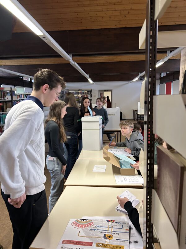 Auch das Landesmusikgymnasium nutzt seit vielen Jahren dieses wertvolle Instrument, um das politische Bildungsinteresse unserer Jugendlichen zu fördern. In diesem Jahr wurde die Wahl für die Klassen 7 bis 13 ermöglicht und von der Klasse 9b unter der engagierten Leitung von Christian Jeuck organisiert. Am Freitag, den 21. Februar hatten die SchülerInnen die Freiheit, selbst zu entscheiden, ob und wann sie das Wahllokal in der Bibliothek im Laufe des Vormittags besuchen wollten.
