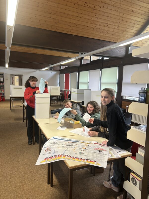 Wir freuen uns über die Möglichkeit, dieses Projekt durchzuführen, und danken der Klasse 9b sowie ihrem Sozialkundelehrer Herrn Jeuck für die hervorragende Organisation der Wahl. Ein großes Dankeschön auch an die zahlreichen Wähler in unserer Schulgemeinschaft, die mit ihrer Stimme ein Zeichen für die Demokratie gesetzt haben!