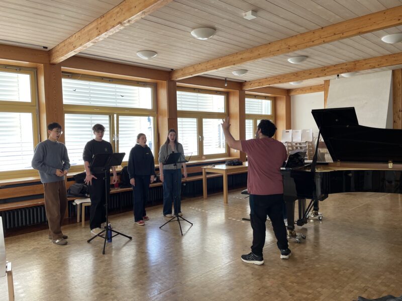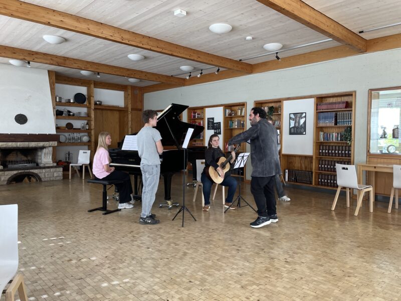 Die SchülerInnen der Jahrgangsstufe 10 haben bereits Werke ausgewählt, diese neu arrangiert und entsprechend der ausgewählten Instrumente und Ensembles gesetzt. Derzeit befinden sie sich in der Ausgestaltung ihrer Arrangements und in der Probenphase. Nur Ben Shalom nimmt sich für jedes Ensemble die Zeit, ihren Werken vor dem individuellen geschichtlichen Hintergrund der jüdischen Künstler im Konzentrationslager neues Leben einzuhauchen.