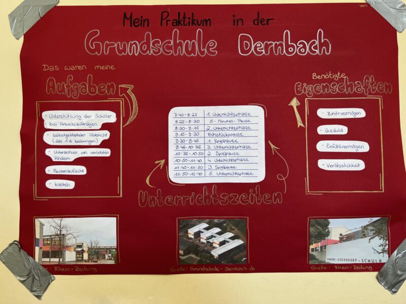 Am 14. Mai fand am Landesmusikgymnasium eine spannende Praktikumsausstellung der beiden 9. Klassen statt. Vor den Osterferien hatten die Schülerinnen und Schüler ein ein- bis zweiwöchiges Berufspraktikum in verschiedenen Bereichen absolviert, darunter beispielsweise Theater, Philharmonie, Veranstaltungstechnik, Architektur, Gesundheitswesen, Polizei, Bundeswehr, Informatik, Bäckerei und Grundschule. Diese vielfältigen Praktika ermöglichten den SchülerInnen, wertvolle Einblicke in die Berufswelt zu gewinnen und ihre Interessen zu erkunden.