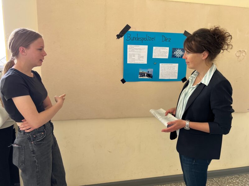 Die SchülerInnen der 8. Klassen hatten die Gelegenheit, die kleine Berufsmesse zu besuchen, sich die Präsentationen anzusehen und mit den „Experten“ der einzelnen Berufe ins Gespräch zu kommen. Es war erfreulich zu sehen, wie groß das Interesse an den verschiedenen Berufsfeldern war. Die Gespräche ermöglichten es den jüngeren Schülerinnen und Schülern, wertvolle Informationen zu sammeln und Fragen zu stellen, die ihnen bei der Praktikawahl im nächsten Schuljahr sowie der späteren Berufswahl helfen könnten.