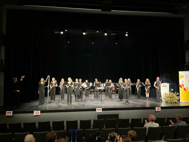 Ein ereignisreiches und musikalisch hochkarätiges 1. Mai-Wochenende liegt hinter den Ensembles des Landesmusikgymnasiums Rheinland-Pfalz: Sowohl das Querflötenensemble flautastique als auch das Sinfonische Blasorchester (SBO) nahmen am 03.05.2025 erfolgreich am 73. Europäischen Musikfestival für die Jugend (EMJ) in Neerpelt (Belgien) teil – und beide wurden mit einem 1. Preis „cum laude“ ausgezeichnet.