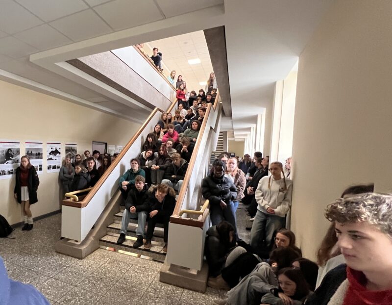 Wir versammeln uns an diesem Tag um 9.00 Uhr, um uns musikalisch und in einer kurzen Gedenkzeit bewusst zu machen, was all die Menschen, die in Auschwitz, und in den vielen anderen KZs in Europa umgebracht wurden, durchlitten haben. Gleichzeitig eröffnen wir eine Ausstellung der Gedenkstätte Yad Vashem in diesem Flur, die sich der Frage widmet: Shoah. Wie war es menschlich möglich?
