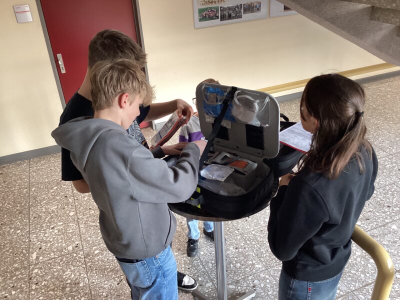 Die Schulsanitäter*innen übernehmen zukünftig eine wichtige Aufgabe in unserer Schulgemeinschaft: Sie sind bei Unfällen die ersten, die zur Stelle sind, leisten Erste Hilfe und informieren, wenn nötig, den Rettungsdienst. Diese Aufgaben erfordern nicht nur Wissen und Einfühlungsvermögen, sondern auch Selbstbewusstsein und Teamarbeit.