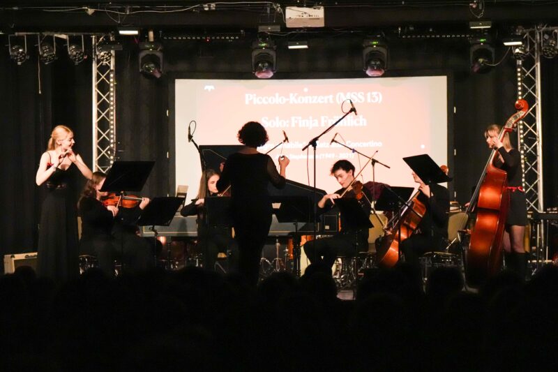 Das Gitarren-Ensemble „cantomano“ unter der Leitung von Volker Höh präsentierte südamerikanische Rhythmen wie „Rin de Angelito – Gracias a la Vida“, während Schüler der MSS 13 am Donnerstag mit der herausragenden Solistin Finja Fröhlich beim Piccolokonzert glänzten. Sie führten das „Concertino für Piccolo, Streicher und Cembalo“ unter der Leitung von Karoline Schaeferdiek auf. Ebenso beeindruckte ein Blechbläserensemble der MSS mit Jean Sibelius‘ ausdrucksstarkem „Finlandia“.