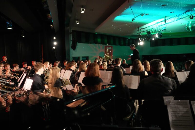 Das Programm begann am Mittwoch mit dem Weihnachtsklassiker „Drei Haselnüsse für Aschenbrödel“, arrangiert von Guido Rennert, vorgetragen vom Sinfonischen Blasorchester unter der Leitung von Philipp Hebgen. Am Donnerstag eröffnete Herr Hebgen mit dem Bläservororchester und feurigen Klängen wie beispielsweise „How to Train Your Dragon“.